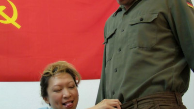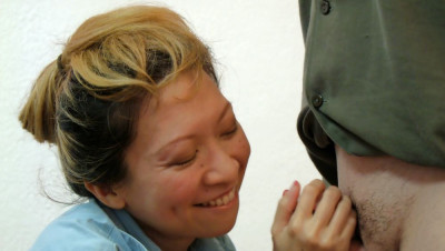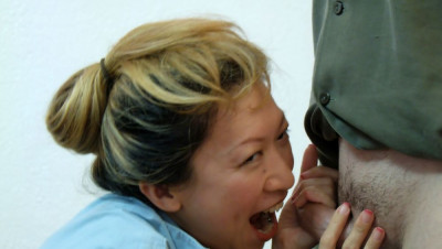 Asian milf interrogates a poor a poor lad by jacking, spitting and talking dirty to make him bust his nut.