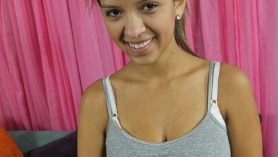 Teeny bopper catches Mr. Johnson jacking off to her and she decides to give him a treat by helping him jizz. She is shocked by the size of his cock and starts stroking and sucking it when she is jizzed on