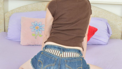 Raine is one of those chicks you'll fall in lust with almost immediately because she's both sweet and slutty and the latter is very evident in this video when she goes nuts over a thick cock. First the hot teen babe strips naked showing off her perky round tits and the stylish landing strip on her pussy and then she spreads her legs wide open so the mature man can lick it before sticking it.