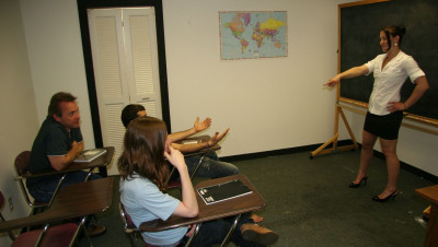 When Bobby starts acting up in class, his teacher Mrs. jewel decides to punish him by embarrassing him in front of everyone. She makes him strip down naked and makes fun of his dick. When he gets erect, Mrs. Jewels starts beating it until he spurts out a big load of jizz.
