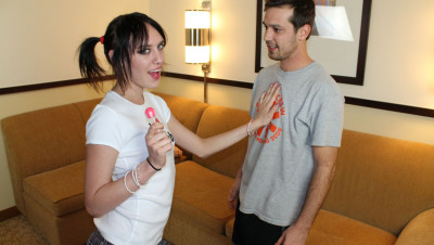 Mysti Moons is a sexy teeny bopper babe with goth vibes and a love of giving handjobs. She even wears a t-shirt that says so! She’s got dark hair and blue eyes, and a tight slim body. Watch how she gets cocks to spurt all over the place!