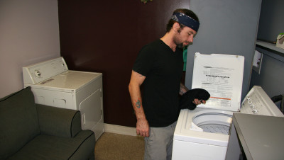 Horny college student Dakota Charms coaxes cum from some stranger in the laundry room. The slutty teen girl makes him to sit down and dominates his dick by jerking it hard until he squirts his semen.