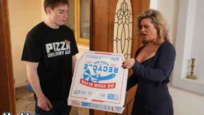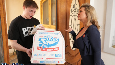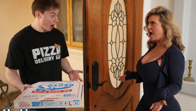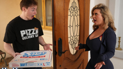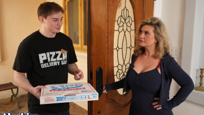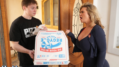 Anthony arrives at Andie Anderson's door with a late pizza, and she rips into him, furious at the lousy service. But her anger quickly flips when she notices the bulge in his pants, and the tension between them explodes into raw lust. She drags him inside, and the scolding turns into a rough, wet, no-holds-barred fuck right on her bedroom floor and blows his load accross her amazing tits and face.