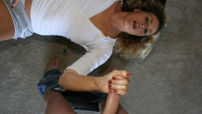 Amateur Milf Joey Lynn face lights up at as she jerks a fat cock until buckets of cum spurts out all over her hands! "Do you feel better now" Joey Lynn says her pink pussy gets wet at the sight of large cum blasts!