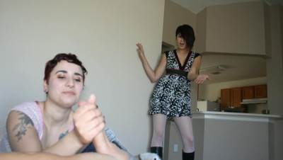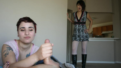Goth gal Missy is a fast learner. At least she is easily taught how to stroke a cock for a cum explosion. She’s got short burgundy hair and dark eyes. Check her out with her friend and one lucky guy.