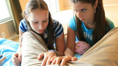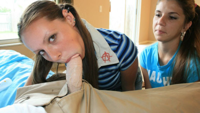 Big dicked neighbor Joey has been fucking and shooting his load on all the local moms. But when teeners JC and Zoe get word...they decide to coax Joey themselves. JC yanks, sucks, spits and jacks until she makes Joey to bust his nut all over her best friend Zoe's pretty face. "Wow Joey...thats a huge fucking cumload!"
