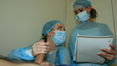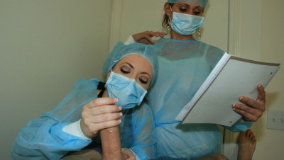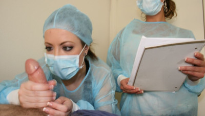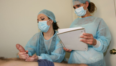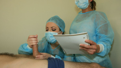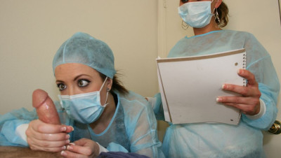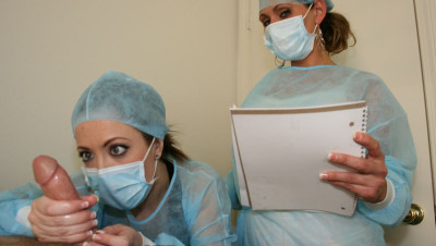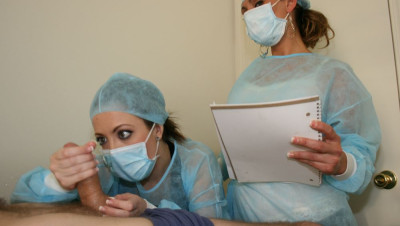 Dr. James and Dr. Ressin need to extract semen from Jonnys cock. They tell him to masturbate in the other room. But he cant cum so the two doctors tell him its ok to cum, and not to be embarrassed. The take turns jacking and tugging his cock until they are finally cum blasted.