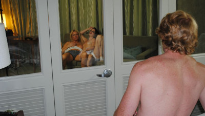 Audrey and Christina tweak their twats when the a perverted guy watches them. he gets so worked up he starts jerking his cock. Audrey and Christina watch him jack off while they play with their pussys. When the boy bursts all over the wall, they are shocked at the massive cumload