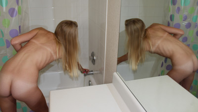 Sexy teen Chasity Bliss gets naked and has a shower while Mr Johnson comes in the bathroom with a massive boner. Chastity likes what she sees and the slutty teen invites him in the bath tub and starts jerking his cock when he instantly unloads a cumshot to her face.