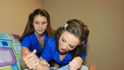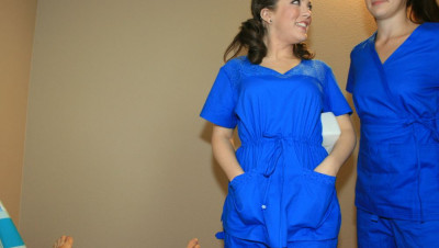 College nurses in training Sofia and JC check Mr. Johnsons sperm count. The teen nurses clean him up and begin the process of milking his cock dry. Sofia works his cock hard, while JC stands by ready to collect his salty cum for analysis.