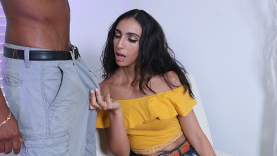Angelica loves watching interracial porn and thinking about what sex with her new stepdad Johnny would be like. HeÃs tall, muscular and has a HUGE cock! She fantasizes about her mom not being home and Johnny's big dick in her mouth. Angelica imagines swallowing her stepdadÃs long schlong all the way down to his balls. She dreams about getting her Dominican pussy plowed by him bending over doggy style and riding his big black cock. She snaps out of her daydream, closes her laptop and hopes to make her fantasy becomes reality.