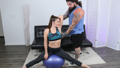 Kendra heart loves nothing more than buff dudes and when she gets her body twisted into pretzel with her trainer she decided to give him a little rub and tug action on his hard cock. Kendra just wont stop jerking until he unloads his massive man goo.