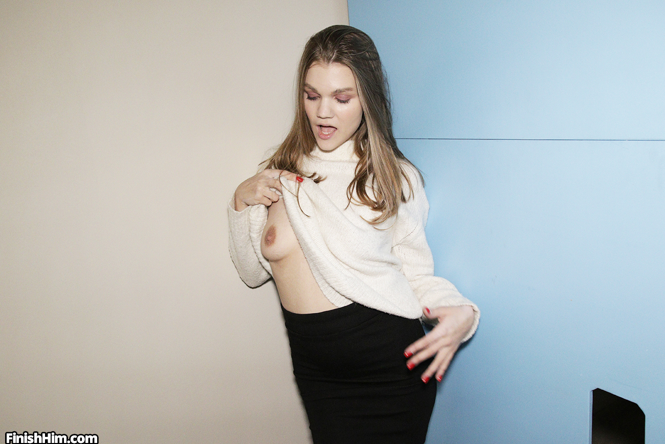 Czech babe Amanda Clarke has got a filthy mouth but lucky for her she doesn't mind at all. In fact she gets quite turned on when she see's a monster dick poking through the gloryhole bathroom. Instinctively she sucks on it, and gives an incredible blowjob while getting blasted in the face and tits.