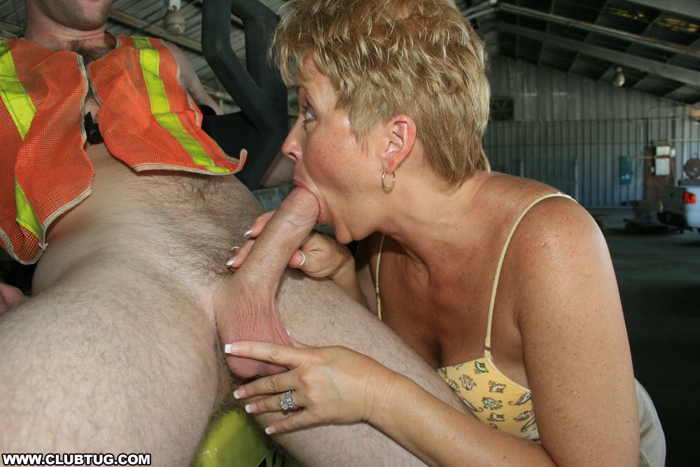 Horny milf Tracy notices a construction worker across the street. Since her husband left her, the perverted mom has been stroking off any dick in the neighborhood. WHen she runs over and coaxes the stud to whip it out. The mom begins to suck and slobber and jack him off when her mouth is drenched in jizz.