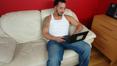Joey is jerking his cock to his favorite porn. Little does he know that teener Sammy is watching him. When he cant seem to bust his nut, the perverted teen helps him by jacking his big cock and rubbing her wet pussy. Joey blows a massive cumload all over the horny teens face.