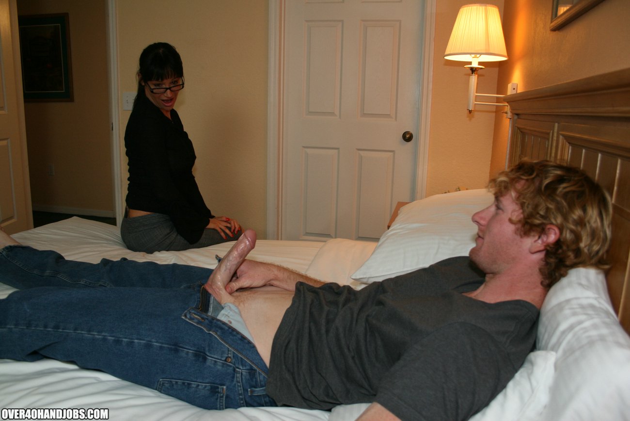 Milf Angie Niore scolds Joey for not doing his homework, but young Joey has better things in mind, like jerking off his cock. When Joey starts pulling his pud, the horny milf gets curious and starts jerking it for him.