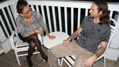 When Stacie Starr likes what she sees in her daughters new boyfriend things get out of control when the prrverted milf teases his big cock. She lets him suck and fuck her tits while she jerks him off making his bust his load on her boobs nefoe her daughter arrives.