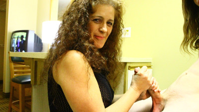 Lisa Brown, a mature horny lady who loves boners, meets Billy, a big-dicked dude. Lisa really likes his huge boner, so she doesn't hesitate to give him a treatment he will remember for along time. She strokes this shift really slowly, and she loves it when he releases his cumload.