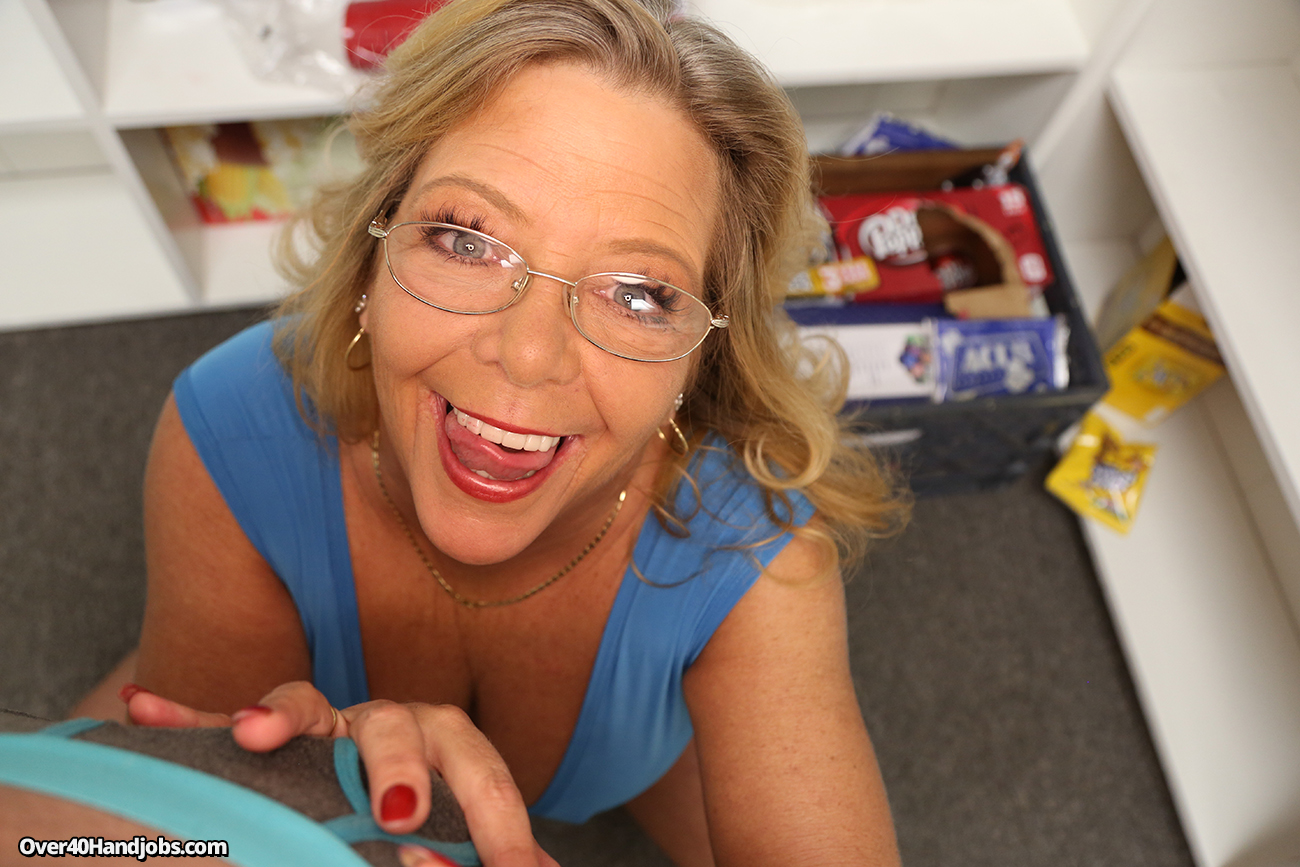 Mikes Dad is lucky because his new wife loves younger guys and wants to make Mike feel right at home. She does this in a number of ways, one way is jerking off his monster sized cock and letting him spurt his salty goo all over her massive 44E tits. Thats exactly what happens one day when she needs him to run an errand for her.
