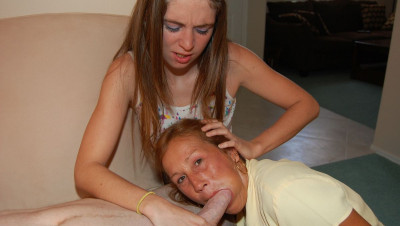 Big cock Joey gets his boner sucked by Mrs. Trisha when tiny teen Autumn joins in. The perverted duo suck and slobber on his bog cock. Mrs. Trisha wants to take the huge load while teen Autumn jacks and spits on his cock. The horny milf is covered in jizz and teen Autumn laps up every last drop.