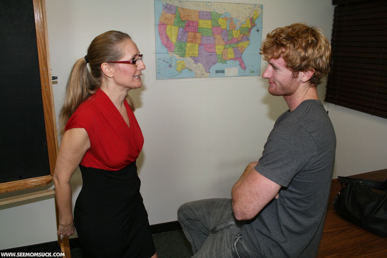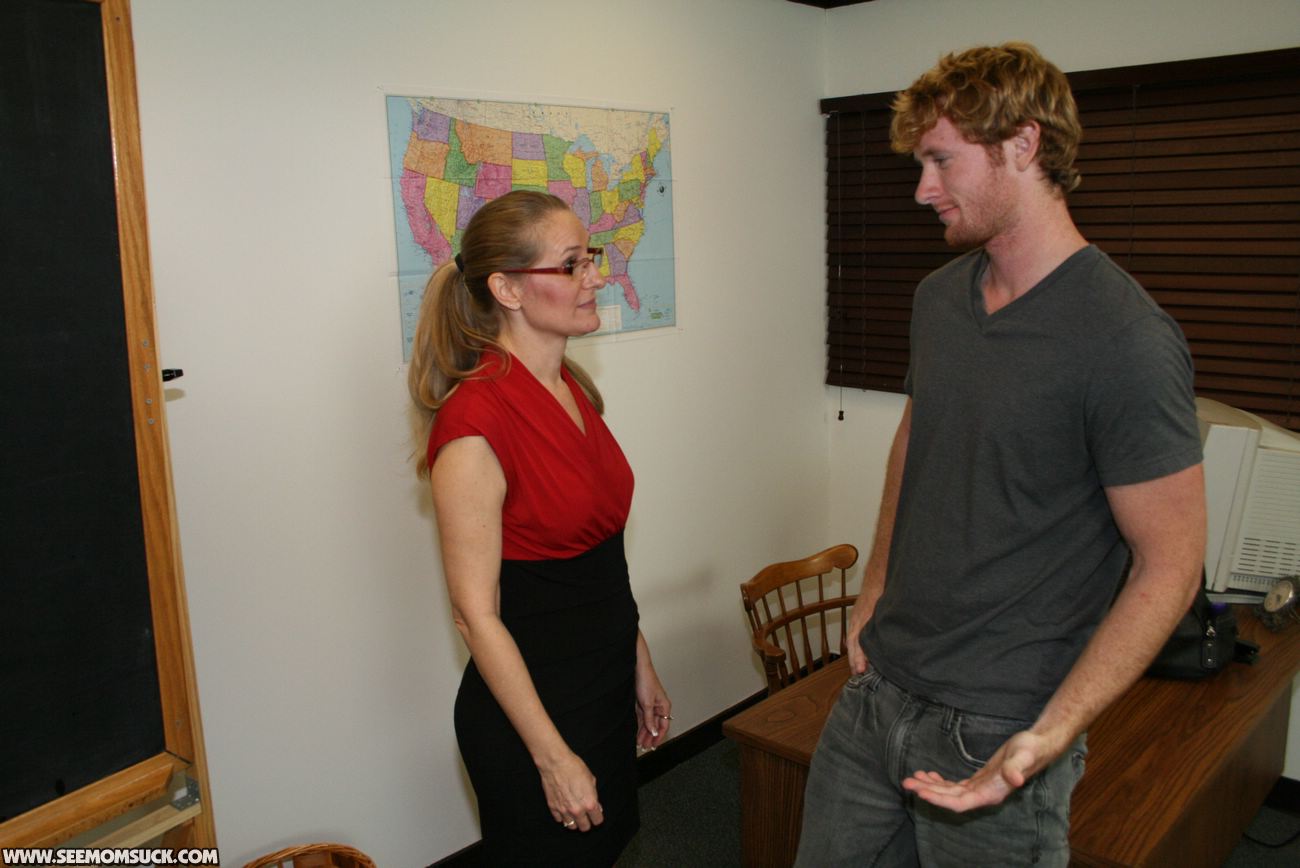 Sara James loves slobbering all lover young guys peckers. The horny milf gets one massive facial after sucking on Joeys boner for getting in trouble in school.