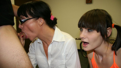 When teenage delinquent Chloe is busted for jerking off boys in class, her angry step mom Angie Noir is furious and tells her the only way to be punished is for the teen to watch as she sucks and slobbers on a giant dick, right in front of the teen. Chloe watches in disgust as Angie gets a huge facial.