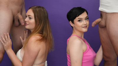 Blowjob challenge. That's the phrase of the day when teens Jade Valentine and Samantha Reigns dropped by the She Reacts studios. The two cute teens can barely contain their excitement as the compete to make the boys cum. Watch the full video to find out who has the best head game.