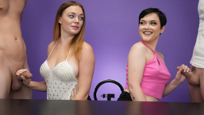 Blowjob challenge. That's the phrase of the day when teens Jade Valentine and Samantha Reigns dropped by the She Reacts studios. The two cute teens can barely contain their excitement as the compete to make the boys cum. Watch the full video to find out who has the best head game.