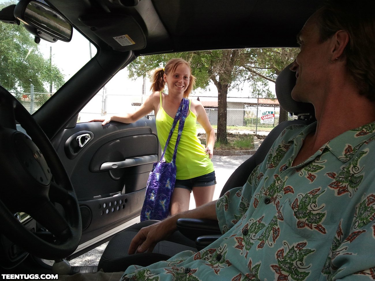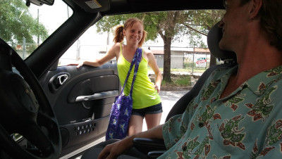 Alyssa Hart need a ride after her car breaks down, luckily, Mr. Johnson arrives to save the day. But since his wife is away, he hasn't busted his nut in weeks. His giant cock protrudes out of his shorts and Alyssa's pussy gets wet at the sight. After some coaxing, Alyssa decides to milk him dry for the car ride.