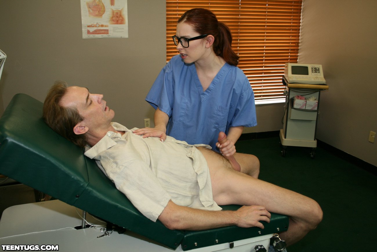 When Clint gets checked out for ED, he is amazed at the sexy nurse Melody in the doctors office. His cock gets immidiatly erect when she walks into the room. But too much blood rushing to his prick makes him pass out. Melody, loving the size of his cock decides to finish him off with a sexy nurse handjob.