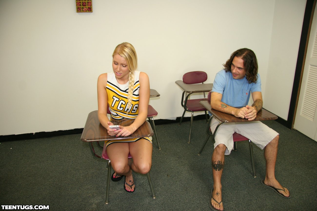 Sexy teenager Vanessa Cage is bored at school, so when Mr. Franklin leaves the room, this hot teen girl decides to pounce on Mikes thick shaft. Vanessa strokes and urges him to cum quickly before Mr. Franklin gets back when moments later Mike nuts all over her face and hands.