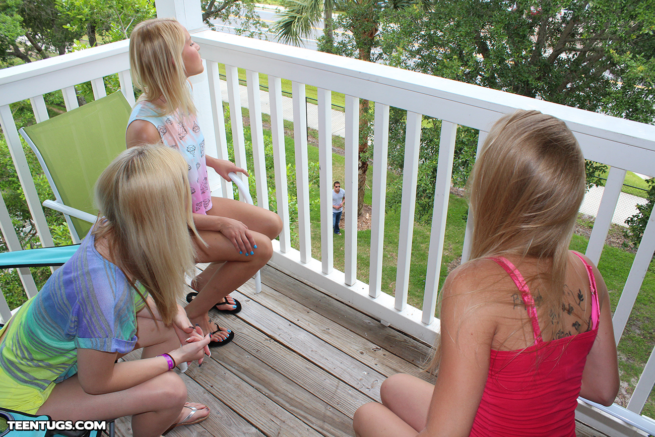 Vanessa Cage, Sunny Marie and Sydney Cross are hanging when they spot the local hunk Billy. The sexy girls take off his clothes and their shirts, before giving his big dick a milking.Finally they ask him to cum on their cute tits, and Billy is more than glad to do them the favor. Its true that blondes have more fun.