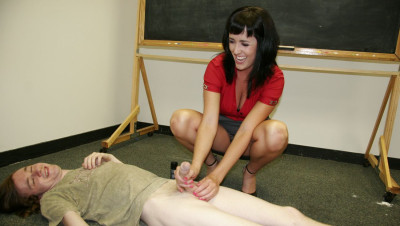 Poor Joey ends up getting detention when he passes out in his teacher classroom. Thing is, he also has a massive erection and Mrs. Comet quickly takes matters into her own hands by stroking his massive 8 inch dick. he eventually nuts a massive load all over her hands.
