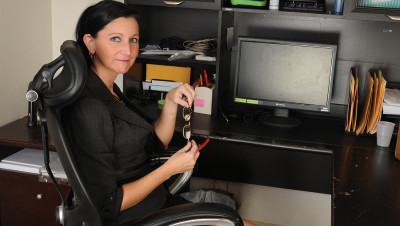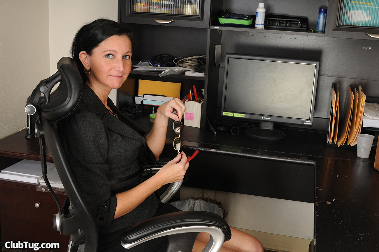 Kelly Greens package has finally arrived at her office. The naughty milf has ordered a lube. Kelly decides to make a live demonstration for him, so she takes her clothes off and uses her new lube to jerk his boner. She is sitting on her knees, giving him some great cock strokes, until she gets splattered with salty jizz.