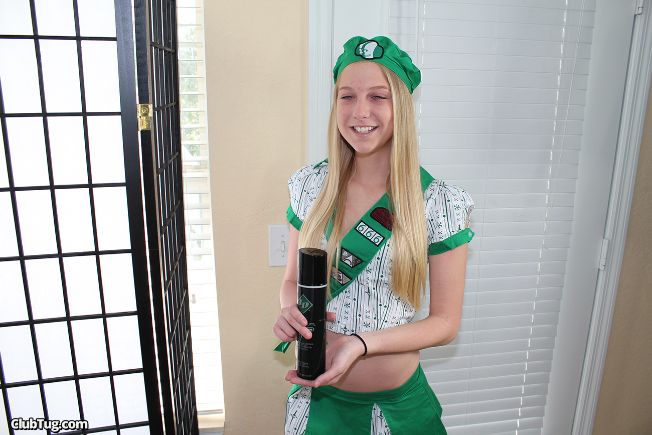 Hot teen Chassity Bliss is a handy scout. She offers her handjob services to men who really need a good jerking. This time she visits Billy and she is glad to give him a hand. The horny babe uses her lube and gives this lucky dude an amazing sensual handjob in the living room of his house.