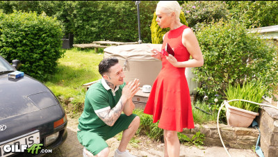 You can call her Francesca Kitten or you can call her the sex-starved socialite. Either way, this hot GILF generally doesn't like to cheat on her husband, but she's so under-sexed she'll fuck the hot gardner. Thats exactly what happens when her gardener gets busted sniffing her panties. Things go from bad to good really quick in a hot fuck session with this gilf.