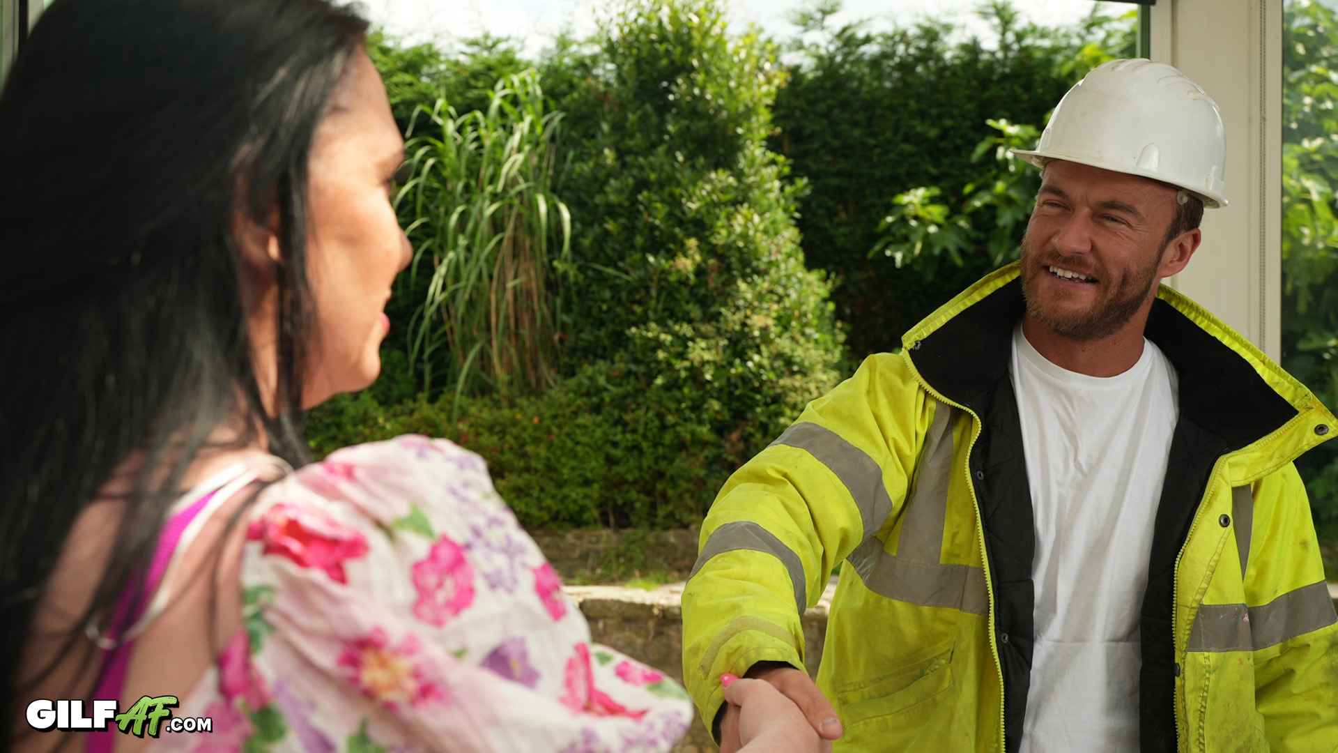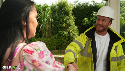 Kjirsten Jenson might be in her 50s but she's still horny as fuck. A case in point is this video where she can't keep her hands off the hunky construction worker. As if playfully teasing him doesn't grab his attention she takes things to the next level. She's so turned on by the stud she grabs and starts rubbing on his cock. This is more than he can handle, especially when she does a strip for him exposing her big tits and curvy body. Find out how the story ends by watching this new GilfAF video.