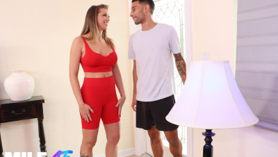 Milf LorReign loves prancing around in her red yoga pants that expose her cameltoe. Who does that? You might do that if you want to fuck the neighbor boy. LorReign invites Blake over for a job. Little does he know, she has other “workout” plans. She makes no bones about the fact that she wants to fuck and teases Blake when they practice stretching. Things get heated quickly when she becomes glued to his prick.