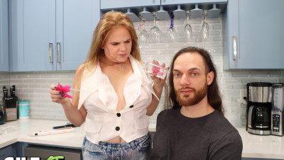 Porn legend Micky Lynn is the type of chick who always gets what she wants. Right now she wants to hook up with her client and she’ll be damned if anything gets in the way. Micky is a hairdresser Cali hires to wash & cut his hair. As she wets his hair her white t-shirt also gets wet and she’s not wearing a bra. He can’t stop staring at her tits, which she notices and decides to have some fun with him.