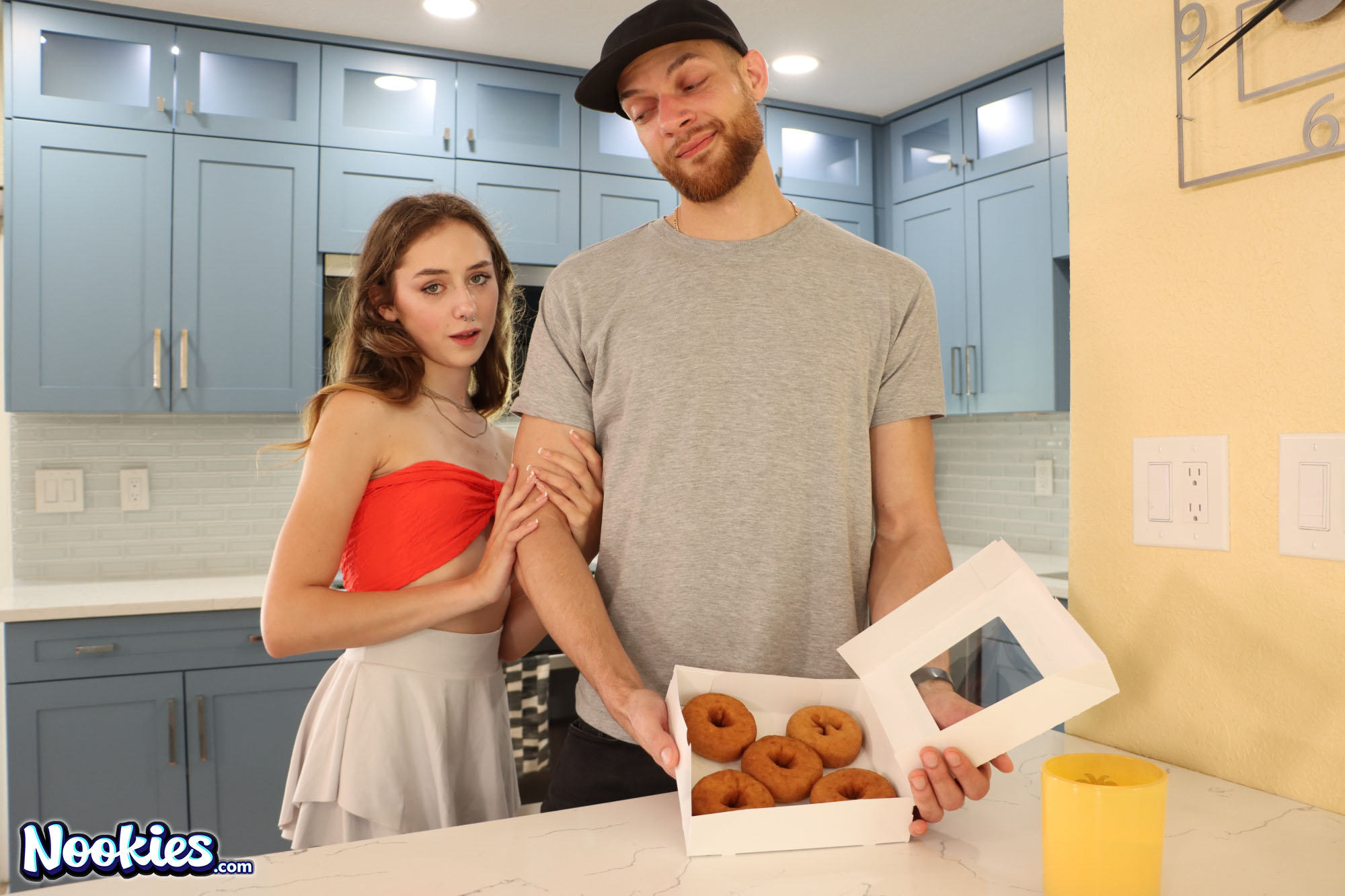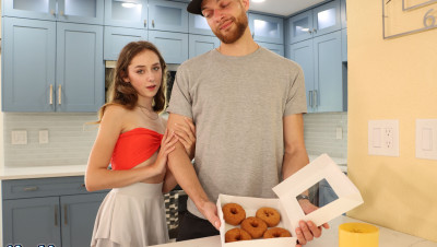 On his food cheat day, Cali decides to order some donuts. He wants 2 chocolate dipped, 2 birthday cake, and 2 glazed. When the order is delivered, he notices one of the glazed donuts is missing the actual glazing. After bringing it to her attention, Daisy Fox finds a fun and creative way to decorate the plain donut with his very own special cum glazing.