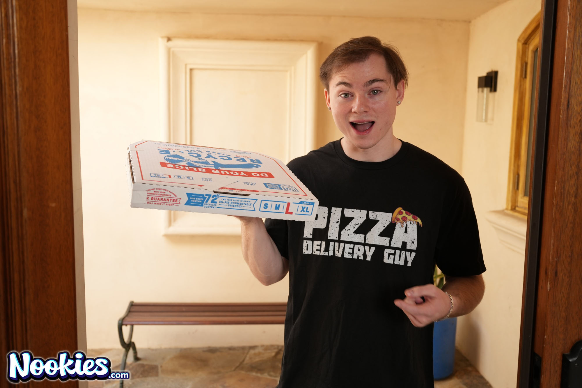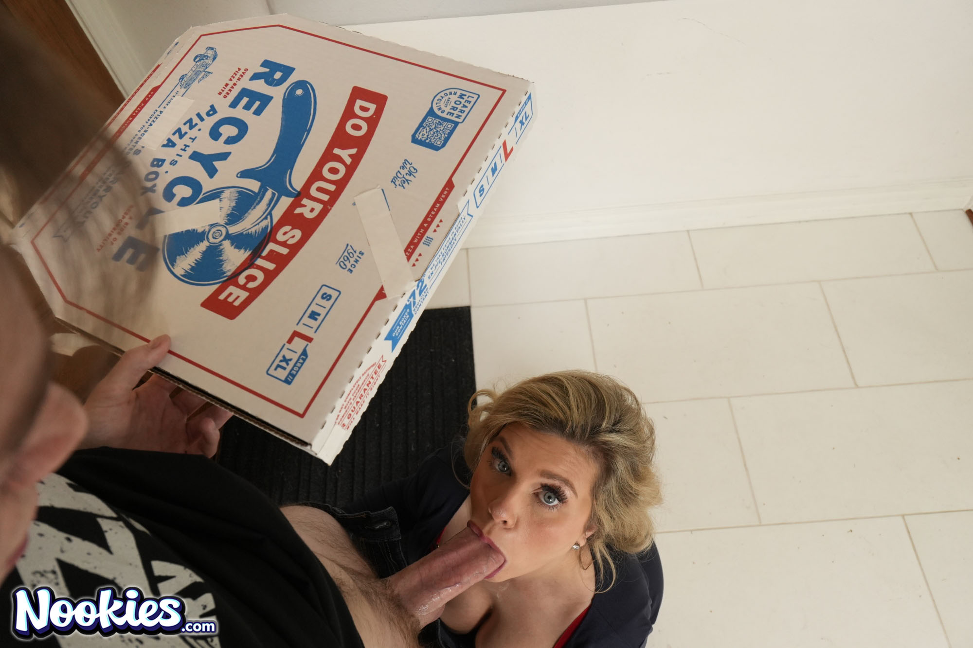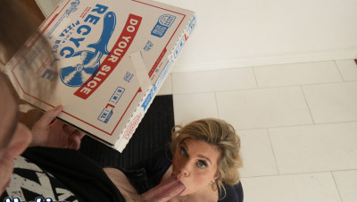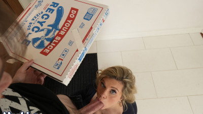 Anthony arrives at Andie Anderson's door with a late pizza, and she rips into him, furious at the lousy service. But her anger quickly flips when she notices the bulge in his pants, and the tension between them explodes into raw lust. She drags him inside, and the scolding turns into a rough, wet, no-holds-barred fuck right on her bedroom floor and blows his load accross her amazing tits and face.