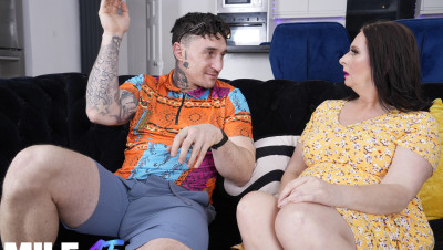 Destiny Blue teases her step-grandson about his tame vacation plans, daring him to match her wild youth. That naughty MILF drops to her knees for a sloppy blowjob, then rides him hard on the couch. He explodes across her massive tits, leaving her glistening and smug.