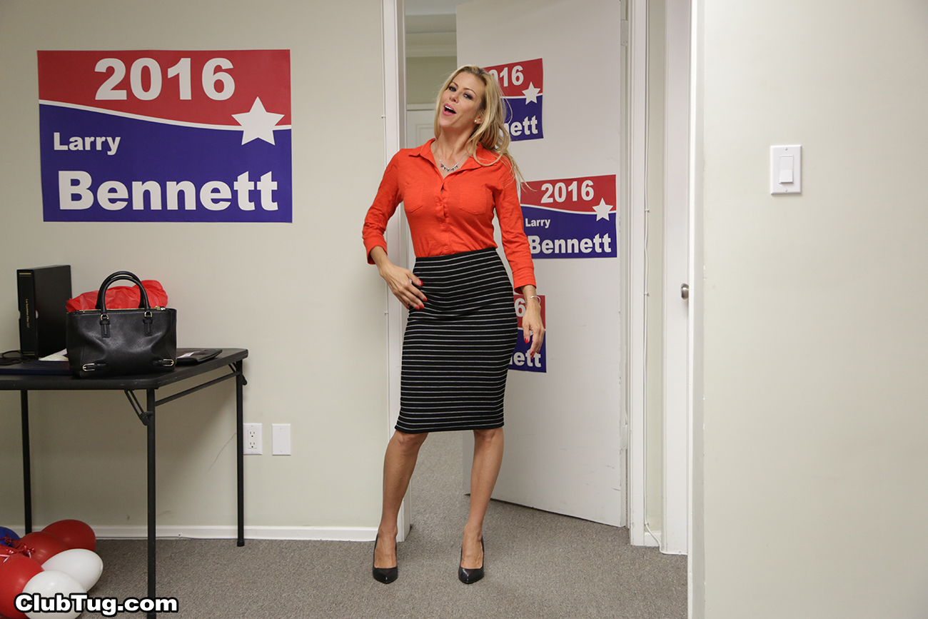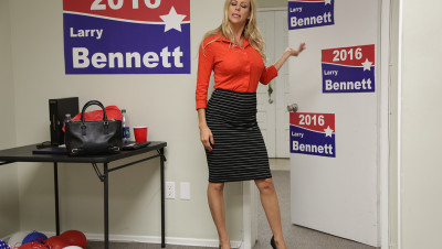 Hot off the campaign trail, young boy Joey gets caught playing with himself in the office. Milf Alexis Fawx takes notice and helps the young man concentrate by joining in and letting him fuck her big tits while she milks him dry with her dirty talking and sensual cock teasing.