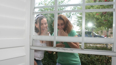 "Ok, we can help you jerk your cock Mr. Franklin, but we aint gonna swallow the sticky stuff thats gross, oh my gawd!" Says two curious teens Karla and Carmen as they spot the neighborhood perv jerking his cock!