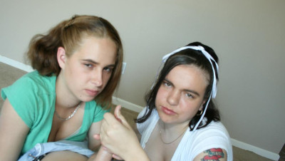 "Ok, we can help you jerk your cock Mr. Franklin, but we aint gonna swallow the sticky stuff thats gross, oh my gawd!" Says two curious teens Karla and Carmen as they spot the neighborhood perv jerking his cock!