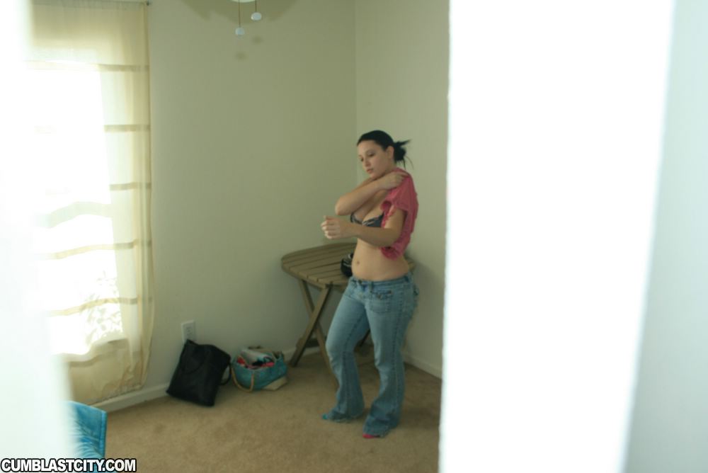 Teenie Saiya is being spied on by her neighbior hidden in her closet. As she undresses, he begins jacking off his huge cock. When Saiya opens up her closet she is sprayed with mountians off man goo. To the peepers suprise, Saiya begins jacking and sucking on his cock, milking out even more creamy jizz.