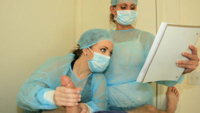Dr. James and Dr. Ressin need to extract semen from Jonnys cock. They tell him to masturbate in the other room. But he cant cum so the two doctors tell him its ok to cum, and not to be embarrassed. The take turns jacking and tugging his cock until they are finally cum blasted.