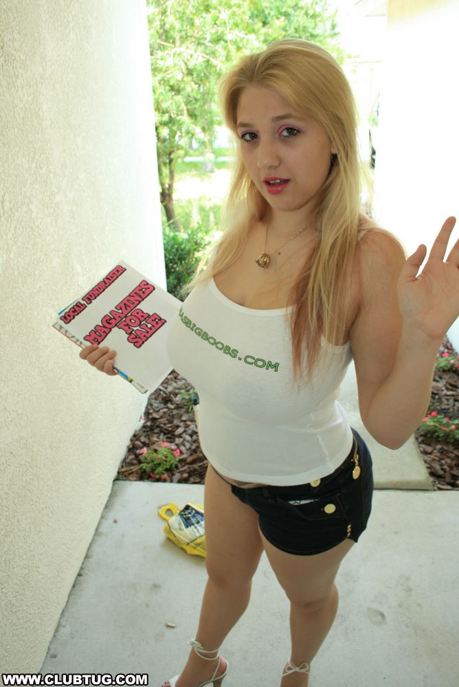 Big tit teen Shyla is selling magazines for her fundraiser when she stops over Mr. Frankins house. To Mr. Frankins suprise, the magazines she is selling is actually HER nude photos from a dirty magazine she shot for! Mr. Franklin kicks back while flipping through Shyla's mag while she jacks him off until he explodes.