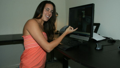 Mr. Carlsons wife hires their neighbor Jennifer to help clean. Jennifer accidentally spots photos of her on his computer. "Mr. Carlson...um, how did you get photos of me?" She then sees a photo of Mr. Carlsons cock. "Mr. Carlson...I think I can help you get better photos" The cum hungry teen begins to jerk off Mr. Carlson as he snaps away his camera.