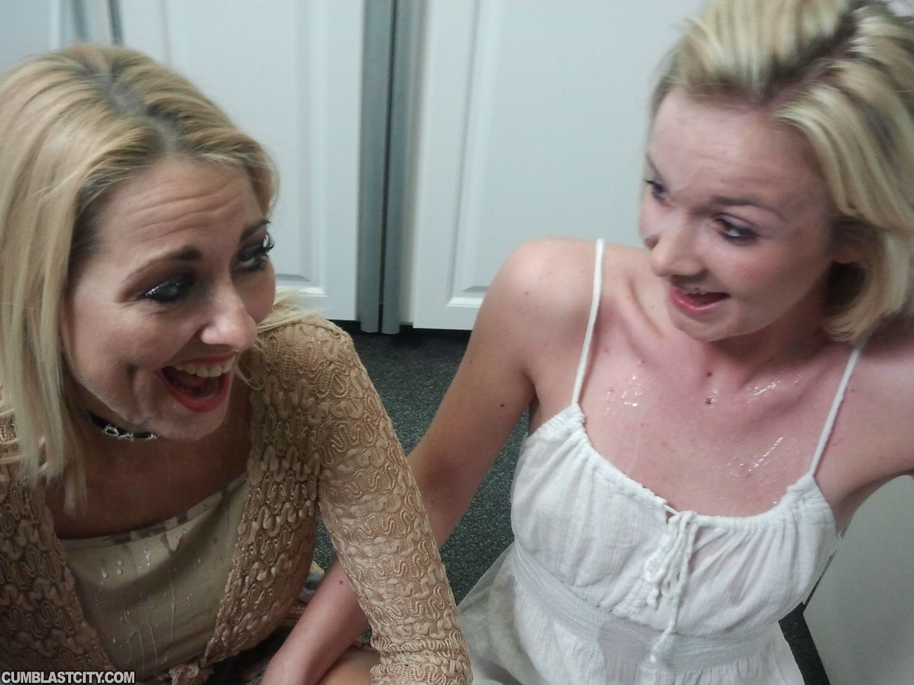 Young Joey and his gf Erica are getting naughty when mom Dallas barges in and catches them in the act. "I told you not to stroke your boyfriends large cock in my house!" As punishment, MILF Dallas wants in and they both start pumping him off. Erica boyfriend unloads with buckets of jizz as he spurts on the two perverted babes' faces.